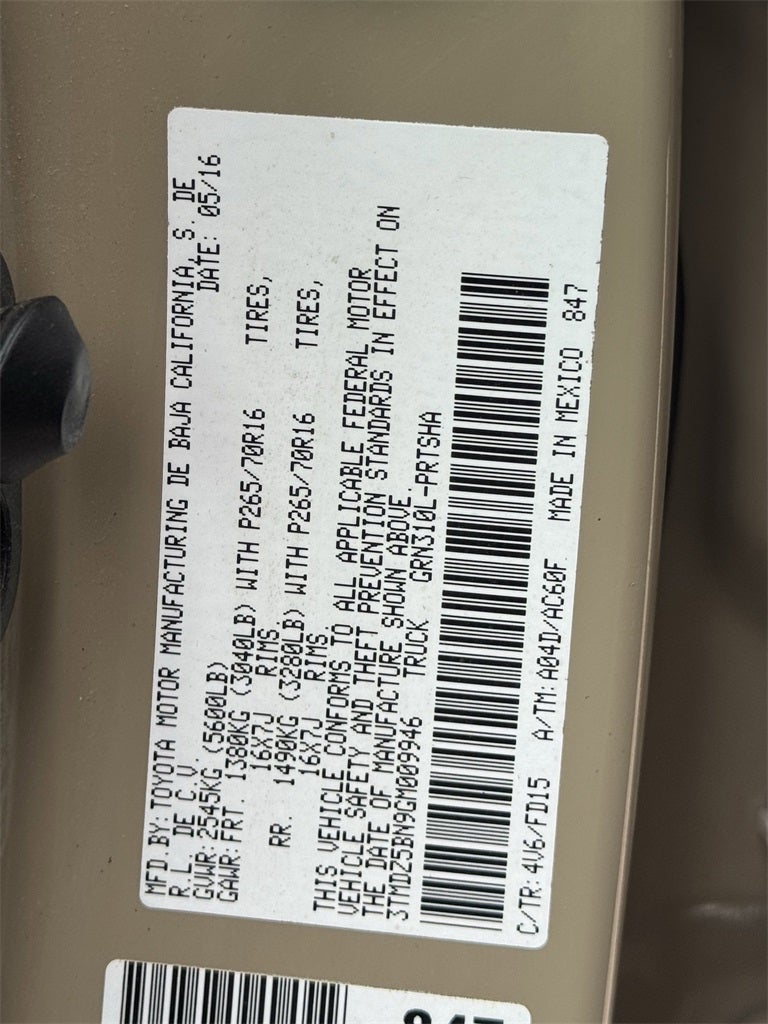 - Vehicle Name: Toyota Tacoma