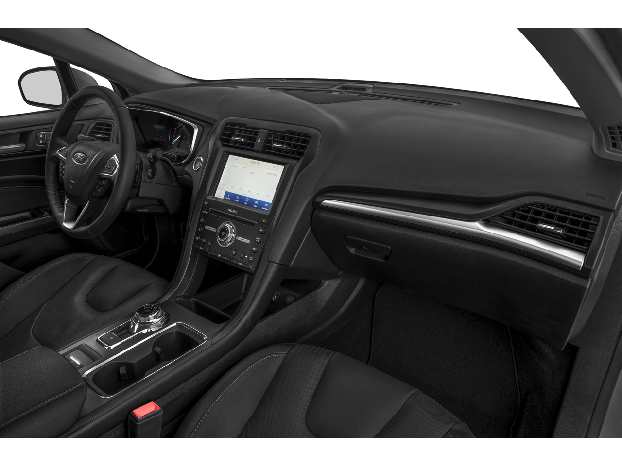 Stepping inside, you'll be greeted by a wealth of premium features that elevate the driving experience. Enjoy the comfort of leather-trimmed, heated, and ventilated sport bucket seats, the convenience of a voice-activated navigation system, and the connectivity of the SYNC 3 infotainment system with SiriusXM radio. The Fusion Titanium also boasts a panoramic moonroof, providing an open and airy cabin atmosphere.