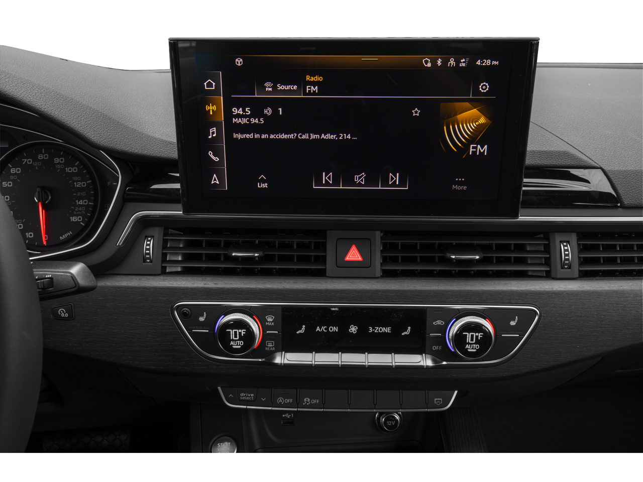 - Radio: Audi Sound System -inc: MMI touch display w/10.1" center screen, Bluetooth® preparation for mobile phone, Audi smartphone interface w/wireless Apple CarPlay, 10 speakers, 6-channel amplifier, 180 watts and HD Radio technology