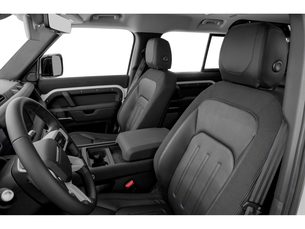 This Defender is not just a capable off-road vehicle; it's also a luxurious and well-appointed SUV. Slip into the grained leather seats, which feature 12-way power adjustability and heating for maximum comfort. The leather-wrapped steering wheel and shift knob add a touch of refinement, while the auto-dimming rearview mirror and HomeLink garage door opener provide added convenience.