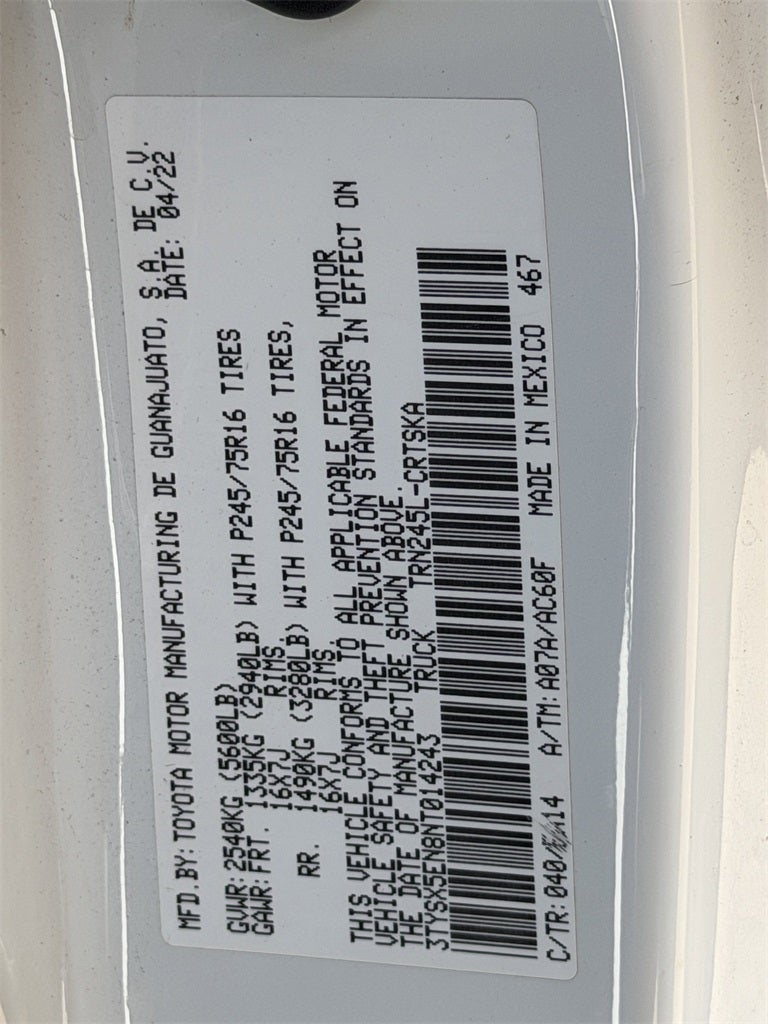 - Vehicle Name: Toyota Tacoma 4WD